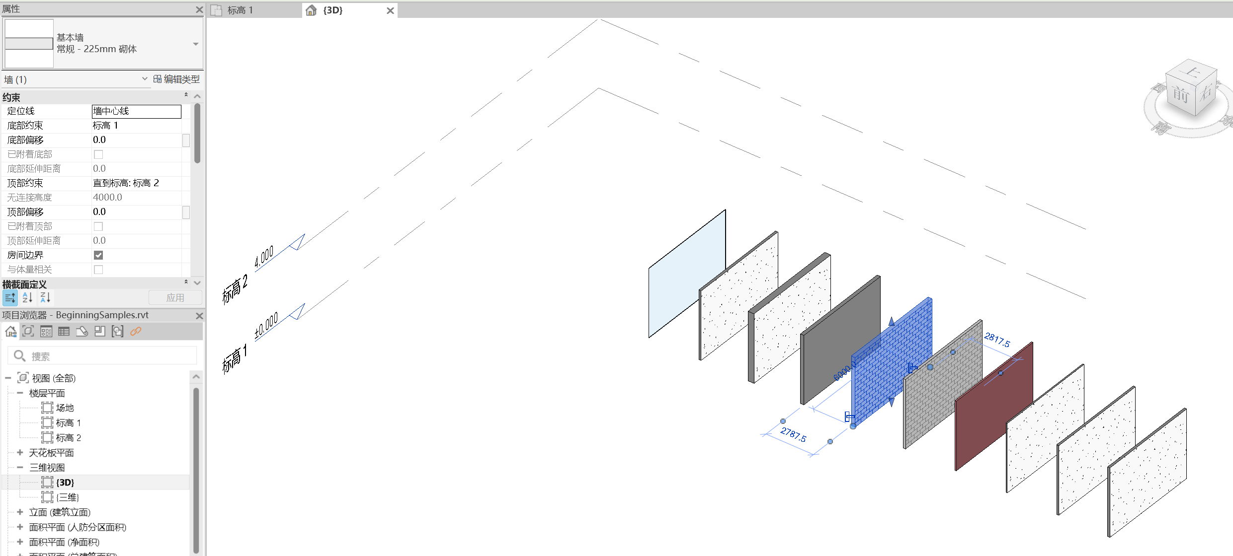 1)创建项目 “批量创建墙示例.rvt” 并作为当前活动文档(可见、可交互)